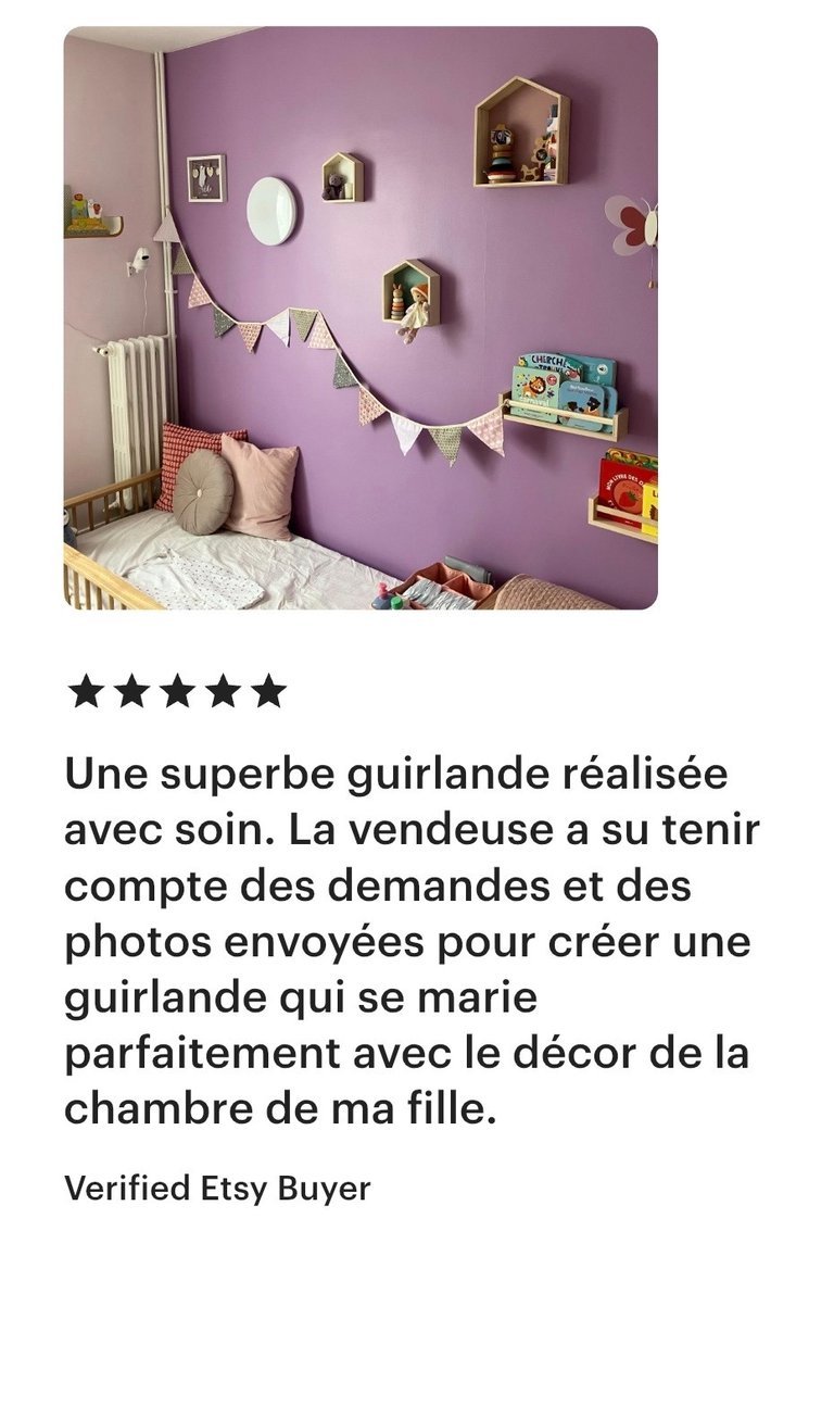 Ajoutez une touche magique à vos célébrations avec une guirlande en tissu. Nos fanions sont faites main et créées avec amour en France.